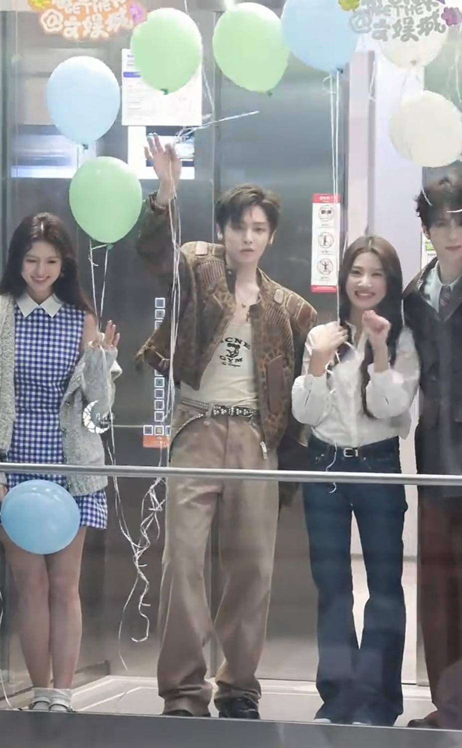 最近流行的扫楼活动中,她和男主角🎭️侯明昊一起出现在电梯里的画面挺引人注意的。侯明昊个子高挑,长相英俊但不显得过分修饰;卢昱晓则显得娇小可爱,不时向观众挥手,还拉着气球玩,看起来活泼又俏皮。
