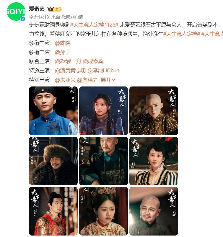 然而,另一部定档剧《大生意人》的出现,打破了这一局面。《大生意人》将于11月25日开播,导演和演员阵容的强大使得这部剧的热度不容小觑。该剧改编自同名小说,背景设定在晚清咸丰末年,讲述了书生古平原如何在遭遇陷害后,从一名被流放的士人,到成为成功商人的历程。剧中的男主角🎭️古平原由『陈晓』饰演,搭档孙千、罗一舟等人,主演阵容星光熠熠,令观众期待。