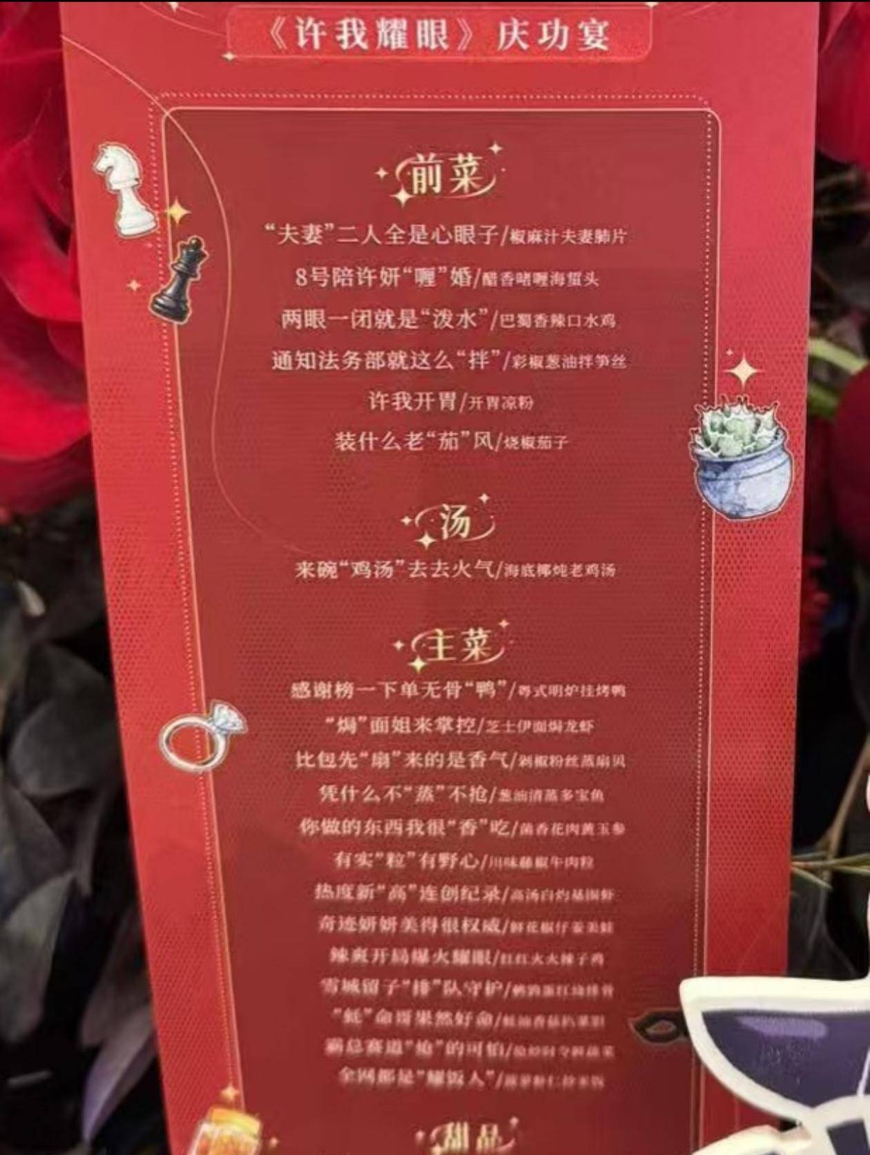 这场宴会除了演员以外,庆功宴菜单也特别有意思。