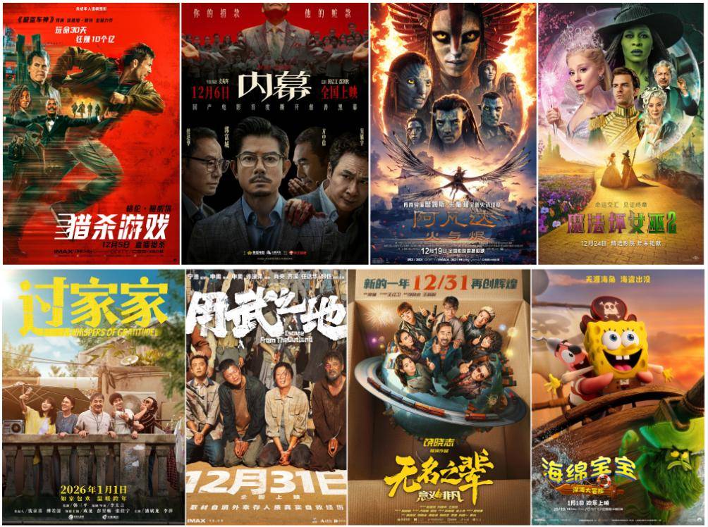进入12月后,贺岁档将迎来一波接一波的精彩影片。包括由『郭富城』、任达华、吴镇宇和方中信四位影帝联袂主演的高智商犯罪片《内幕》,根据史蒂芬·金同名小说改编的惊悚动作片《猎杀游戏》,以及詹姆斯·卡梅隆执导的系列续章《阿凡达:火与烬》。此外,还有跨年档的《用武之地》《匿杀》《过家家》《无名之辈:意义非凡》《海绵🧽宝宝:深海大冒险》等多部新片陆续上映,为观众带来一场年度最盛大的电影文化盛宴。
