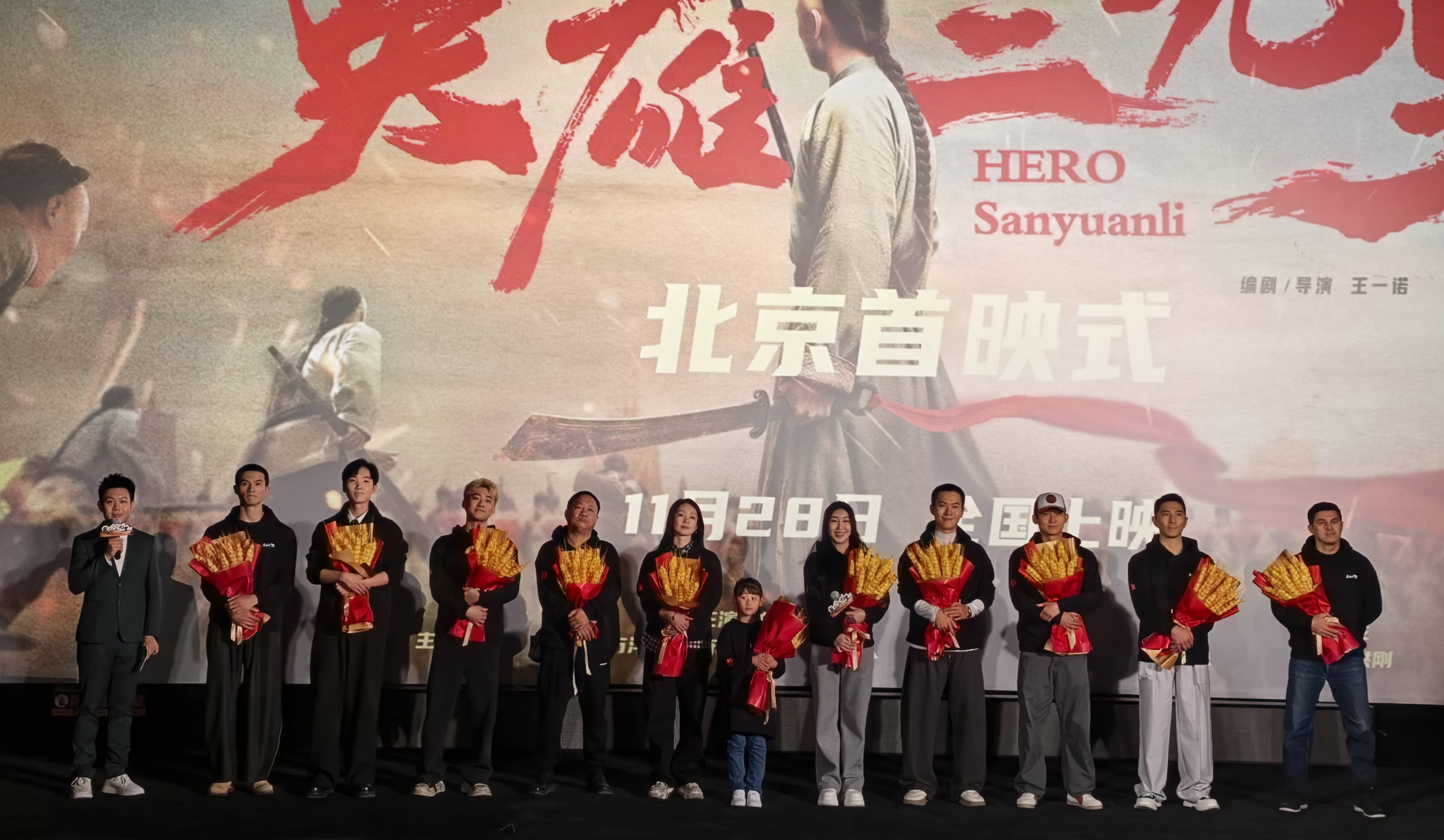 首映礼尾声,导演王一诺与全体主创向观众深鞠躬。从广州三元里抗英遗址到各地采风,这个坚韧的青年导演也承受了极大的压力,影片虽然是一部中小成本的经费体量,却拍出了弥足珍贵的意义和价值。正如王一诺所言:“这部电影致敬我们的先辈们,他们的勇毅如星火般照亮了民族暗夜,他们都是英雄。今天,我们用光影把民族的精神传承下去。”
