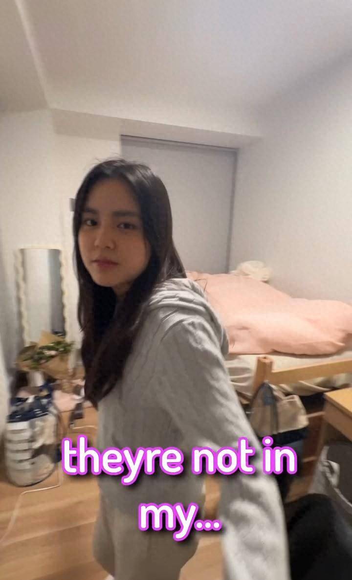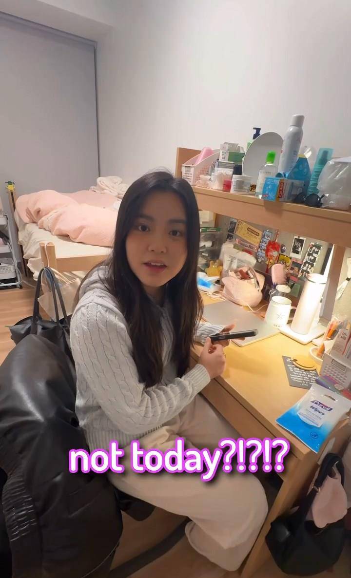 尽管姚焯菲多次反对,李立仁仍坚持拍摄她略显凌乱的房间,并笑称:「没关系啦!」影片中可见宿舍空间虽不大,但摆放了各类『化妆品』、护肤品和个人物品,床上还有未叠好的被子。姚焯菲一边匆忙整理床铺,一边抱怨房间太乱,二人互动自然默契,充满火花❇️。
