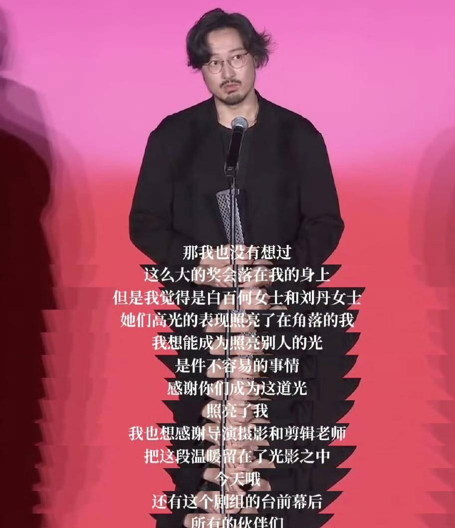 有意思的是,获奖的『王传君』在台上并没有显得特别兴奋,他只是平静地感谢了『白百何』和刘丹,说她们的光芒照亮了角落里的自己。