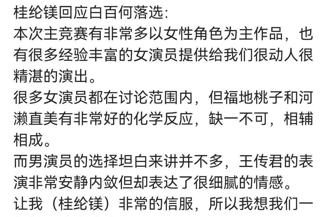 传言中还提到,一部电影很难同时拿到男女主角🎭️奖,『白百何』觉得不公平,认为『王传君』的戏份甚至不如一些配角。