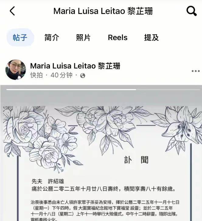 11月底,他的好友黎芷珊在『社交平台』上发了讣告,也公开了后事的安排。从这点能看出,两人交情不浅,连这样的家事也代为处理。
