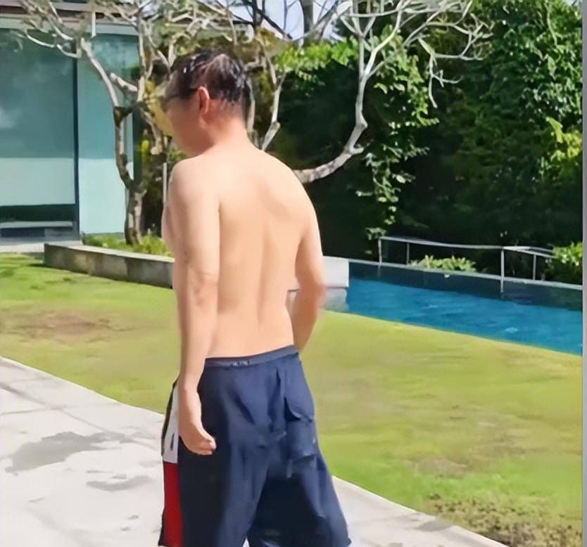 视频里他首次袒露上身,清晰展示胸部与腹部。