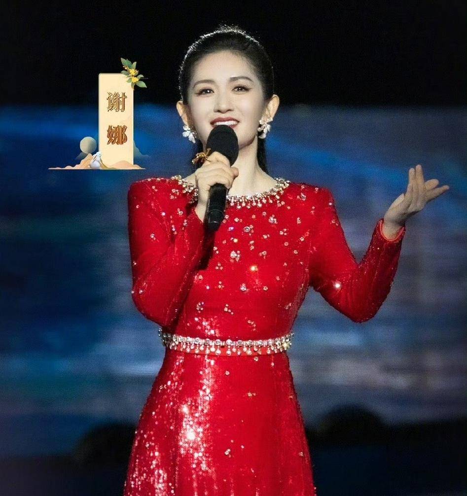 『谢娜』是第一次登上央视中秋晚会的舞台,而且这次还是在她的家乡四川。她一袭红裙,扎着马尾,看起来既喜庆又大方。在央视的镜头下,状态也很不错。