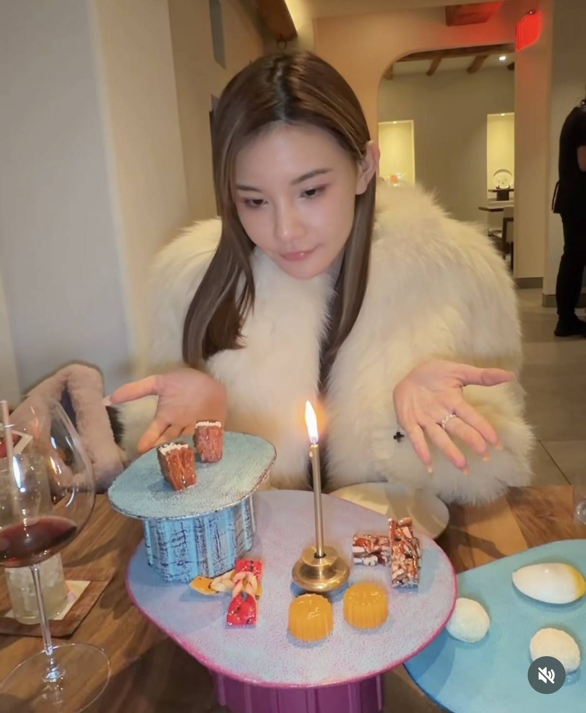 合照中钟睿心『打扮』富贵,穿了黑色的短裙,还套了一件皮草大衣,非常隆重,两人应该是去餐厅吃饭庆祝。吃饭的地方是高级西餐厅,现场还颇有仪式感,开了红酒,还准备了类似蛋糕的甜点,上面还插了蜡烛。钟睿心还对着蜡烛许愿,就像过生日一般。钟睿心还公开了两人在现场的对话,她称在一起十年了,还帮马清铿生了那么多个孩子,大概就是想强调并且凸显两人在一起已经有长达10年的时间这个概念。