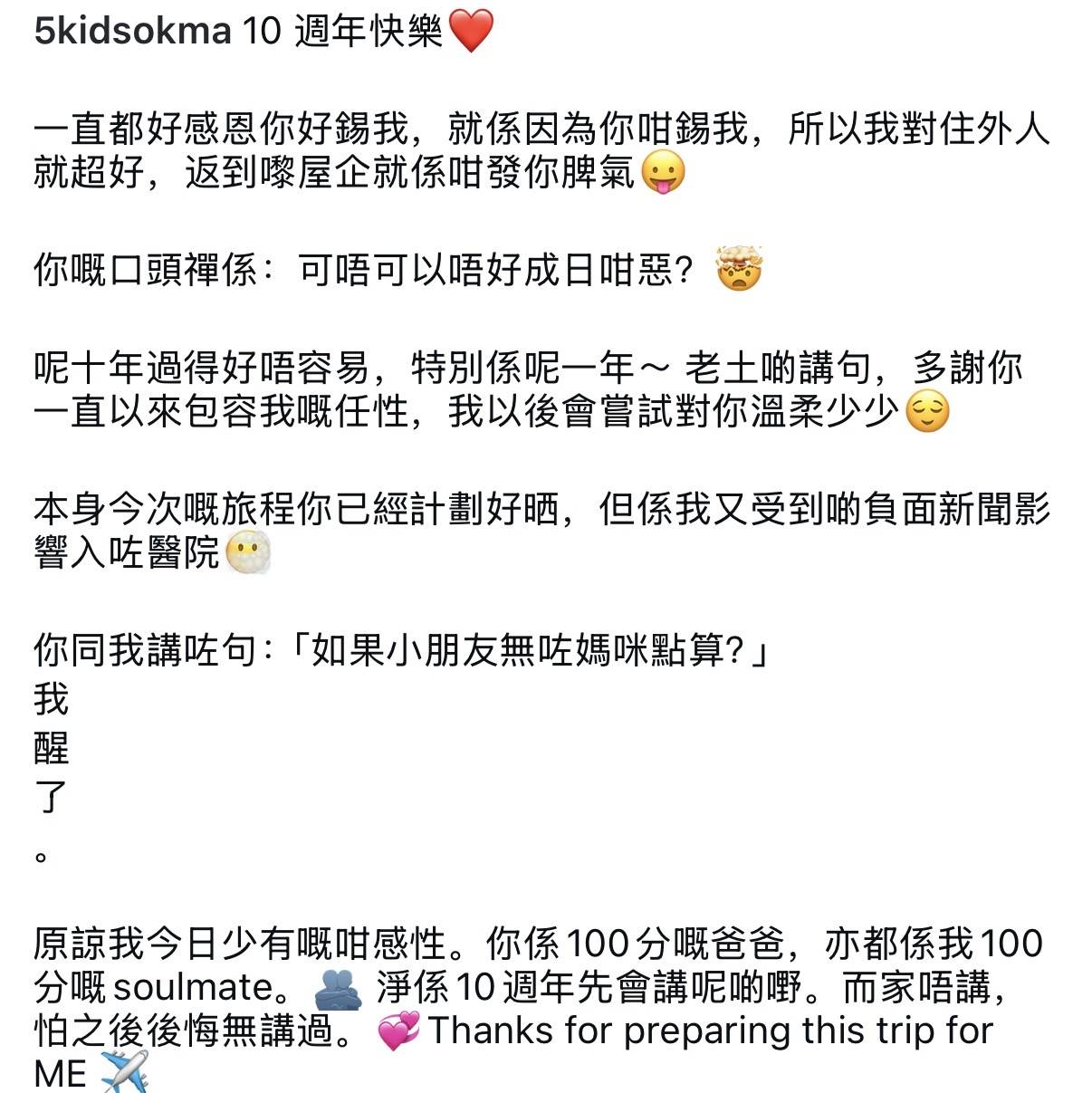 随后钟睿心还写下长篇文字,文字显得很感性,内容就是对马清铿的无尽感激,感恩对方一直很疼爱自己,她形容对方是个100分的好爸爸,而自己是100分的灵魂伴侣。值得留意的是,钟睿心用的是“灵魂伴侣”来形容自己的定位,换言之她不认为自己是情人,也不想成为对方的妻子,所以她才用了这个身份定位自己。事实上,钟睿心虽然是第三者,但是她从来就没有想要取代马清铿妻子位置的意思,她还曾经抛出过“情人比正宫更有钱,有钱比结婚更重要”这样的话语,显然她不想与马清铿结婚,也不想成为对方的妻子,有钱就好,所以马清铿与钟睿心在一起也没与妻子离婚。