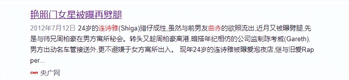 而这之后,媒体对连诗雅的情史变得更加感兴趣,纷纷深挖她的过往感情经历。