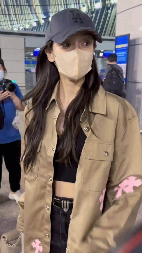 帽子压得很低,头发随意地披着,有几缕还翘起来了,完全没有以前机场照那种一丝不苟的精致感。