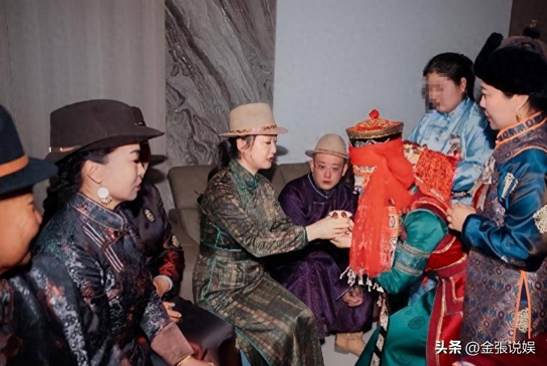 她和老公徐明朝穿着传统蒙古袍接受新人敬茶,11岁的女儿萌萌也跟着一起出镜,画面看起来温馨又接地气。