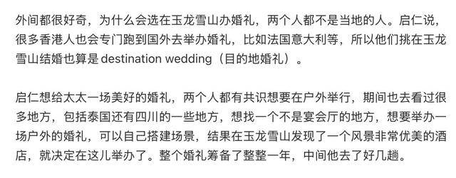 结果发现玉龙雪山有一个风景非常优美的酒店,就决定在这里举办了,期间霍启仁和太太还在当地住了一段时间,跑了好几趟。
