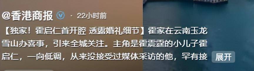 而是霍家最不爱出风头的小儿子霍启仁,突然在云南玉龙雪山脚下办了场婚礼。