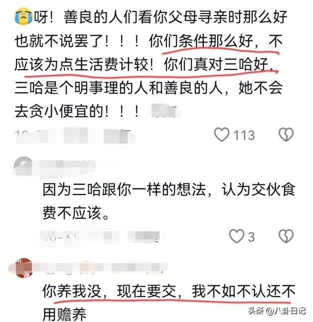 网友也都觉得哈爸哈妈本来生活条件就是那么好的,不应该让瑾汐出生活费的,再说他们也没养过瑾汐一天。