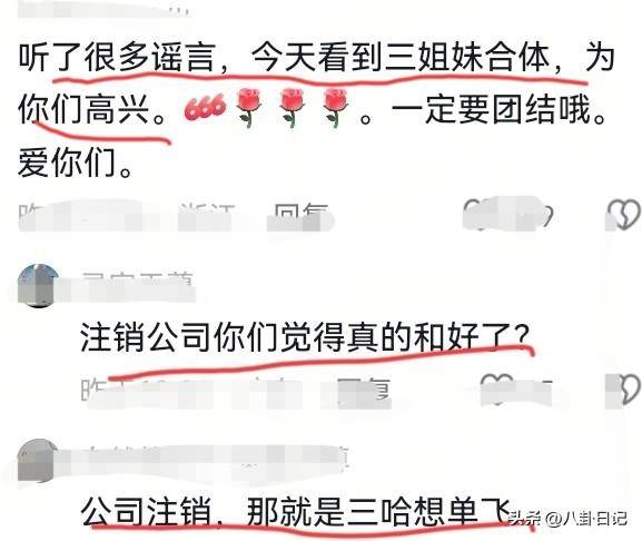 正如这位朋友说的,其实分开对她们三姐妹来讲或许是好事,各自发展也是挺不错的,大家说是不是?