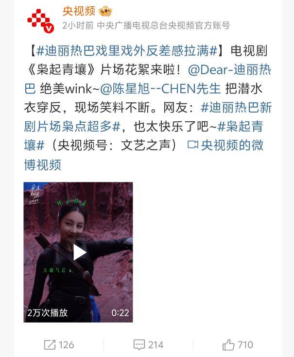 不止热巴一个人卖力剧宣,《枭起青壤》还获得了央视的力挺,央视频的官方账号也放出她的花絮视频。