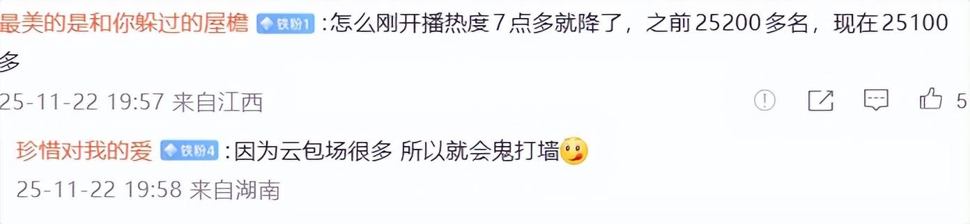 但热度大归大,剧集到现在还是没脱离粉丝剧的范畴,就连热度也有一大半是粉丝用云包场凑出来的,粉丝一松懈,热度立马就回落。