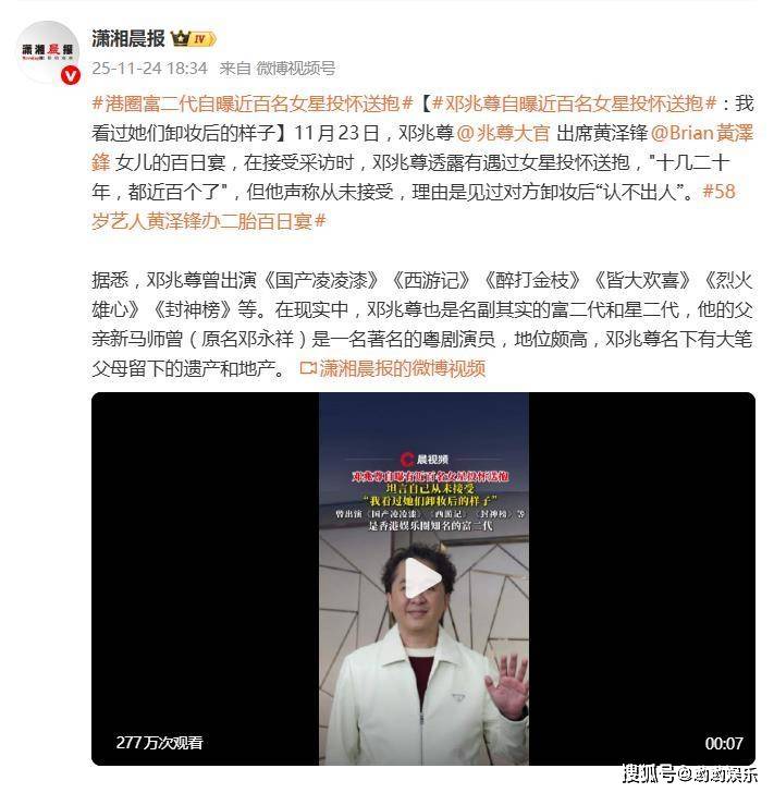 他那句“卸妆认不出”的玩笑,很快成了争议的漩涡中心。网友们分成两派,一边批评他太肤浅,把女性♀️价值全拴在外貌上,还有人讽刺说:“难道女星们都是流水线生产的‘化妆娃娃’?”另一派则较真地追问名单,怀疑“近百人”是不是吹牛炒作。有博主分析得挺透,说邓兆尊这人精得很,从过去到现在,一直维持着“风流却不越界”的人设,这次发言不过是又一次精准的“话题营销”,既吊足了胃口,又没越雷池半步。