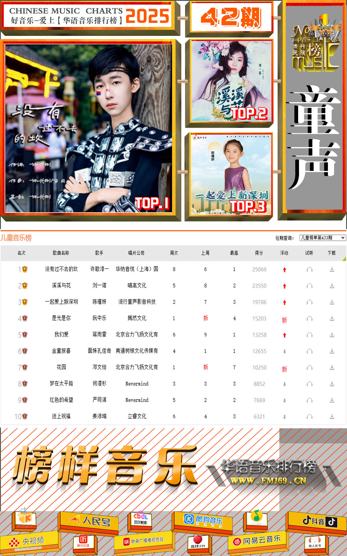华语音乐排行榜【民歌总榜】第650期2025年第42期榜单排名