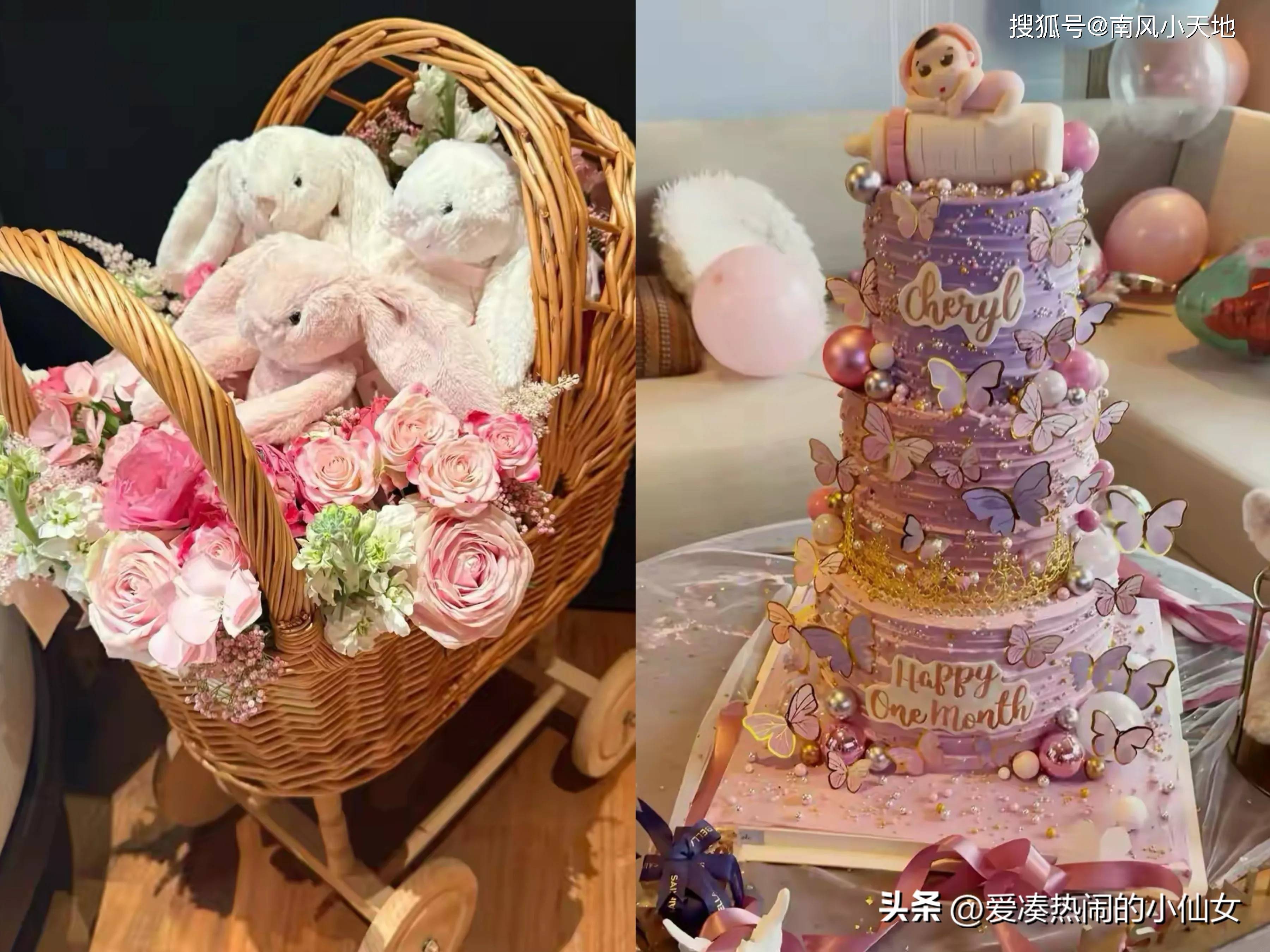 庆祝也安排上了,三层蛋糕,一车鲜花,还有某品牌兔子,据称是给女儿满月准备的,气氛拉满,仪式感到位