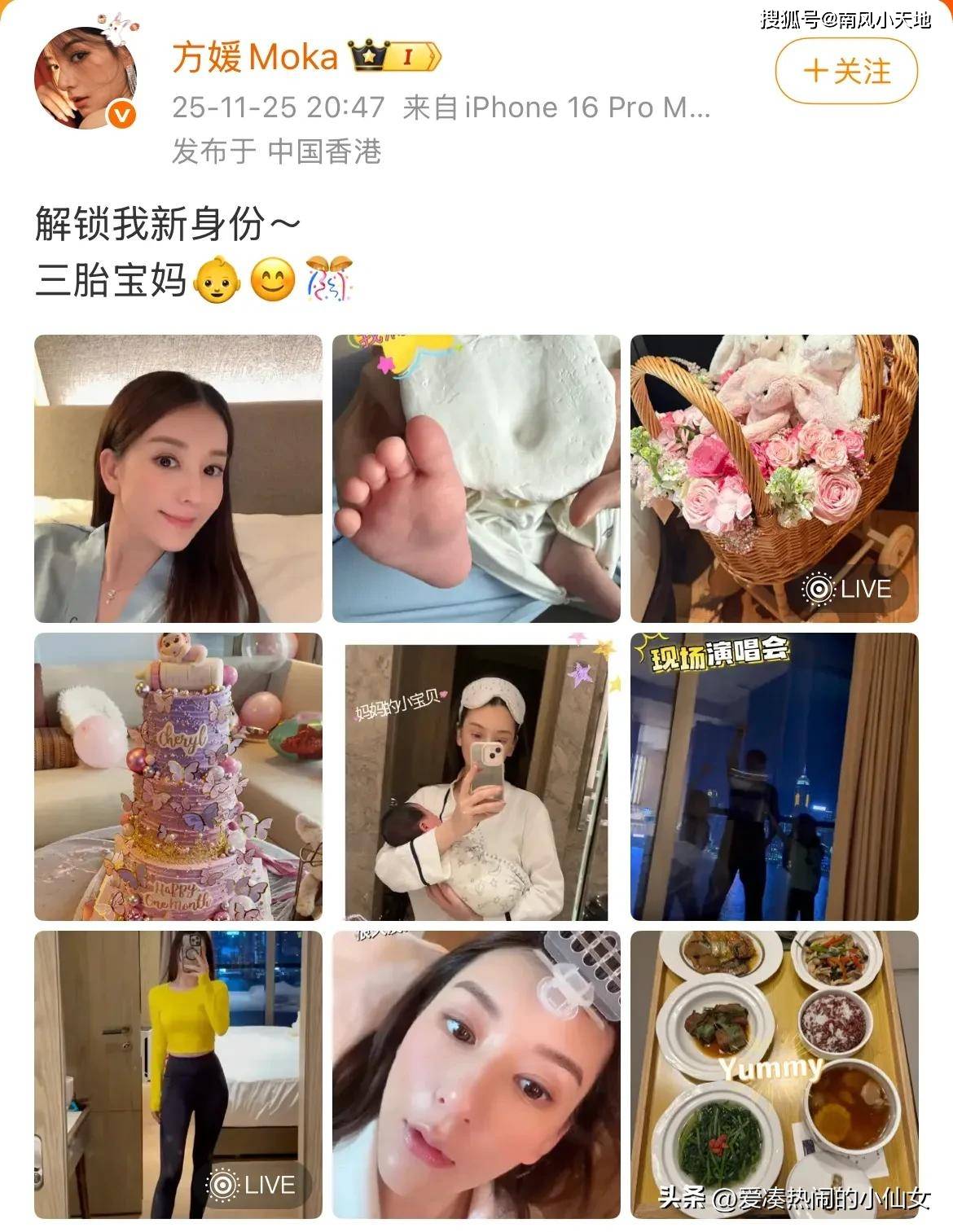 先看官宣,方媛直接晒正面照,小姑娘五官清秀,被夸美人胚子,卢靖姗那边更稳,一家人围着小宝拍温馨照,不露正脸,也挺暖,是不是两种路子
