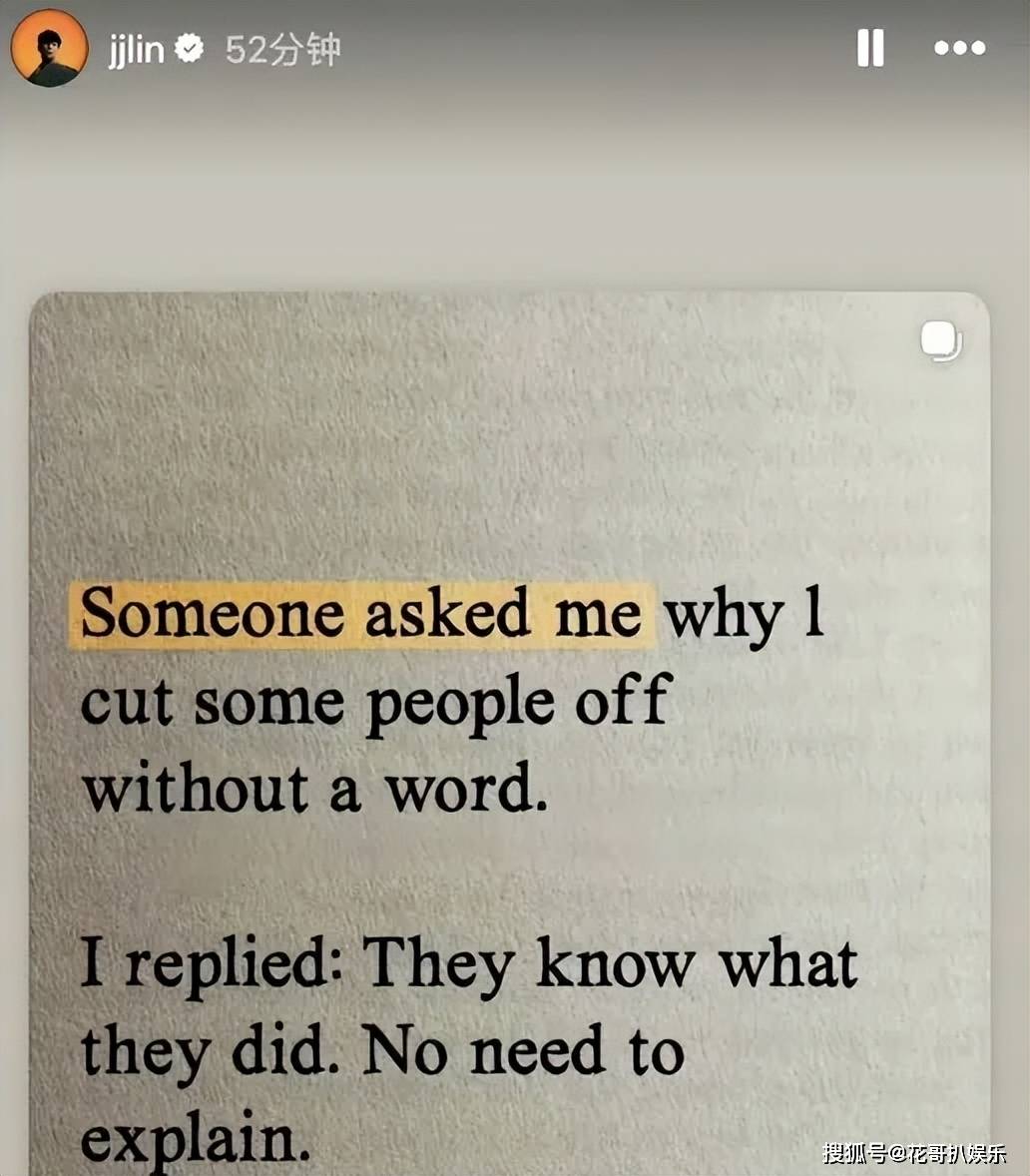 不过显然『林俊杰』对这段恋情挺满意的,还特意发了动态回应,说自己已经和某些人断绝关系,至于原因这些人自己心知肚明,然后又发了“耐心”,和默认差不多了。看来这次确实是遇到合心意的,想要安定下来了。