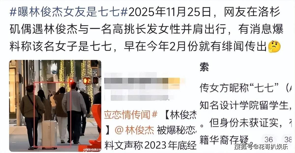 事情的起因是网友在洛杉矶的时候,偶遇了『林俊杰』,他正在和一个年轻女子逛街,两人都穿着棕色外套🧥、白色长裤,举止亲密。穿着情侣装和异性单独出来游玩,怎么看都不像是普通朋友关系,随后,关于『林俊杰』恋情的话题就发酵起来了。