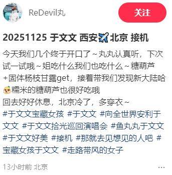 11月21日的时候,于文文从北京飞往西安,她的『穿搭』就非常奇怪。