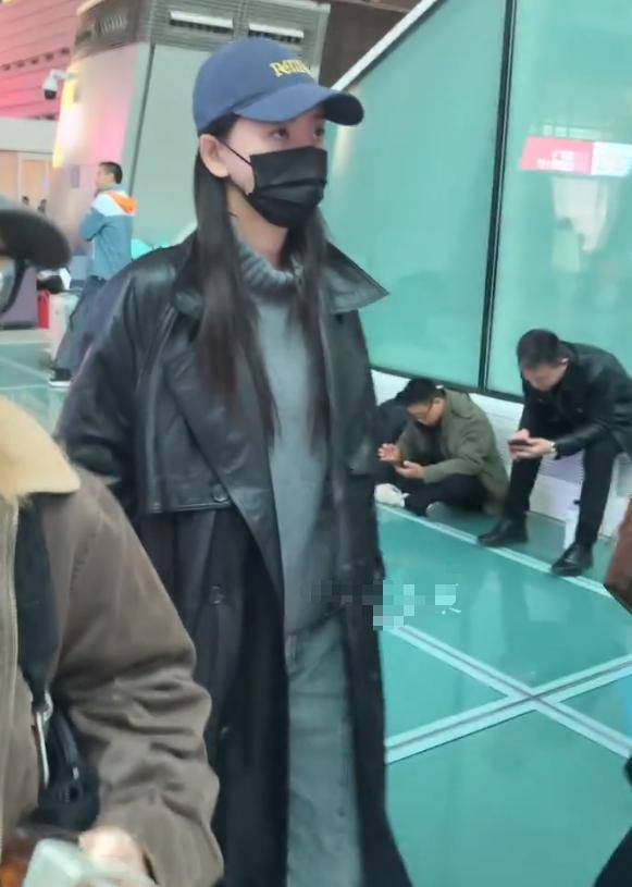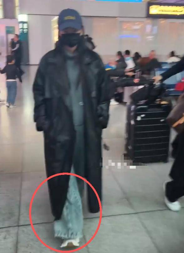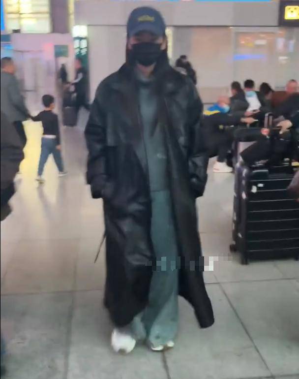 鸭舌帽🧢口罩、外加大皮衣,内搭则穿着一件高领毛衣搭配牛仔裤👖,审美属实尴尬,完全让人欣赏不来。