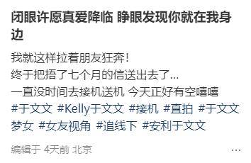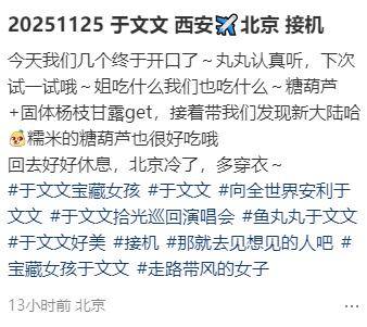 11月15日,随着于文文现身西安机场后,她的热度再次高了起来,无数粉丝都想让于文文到西安开一次演唱会。