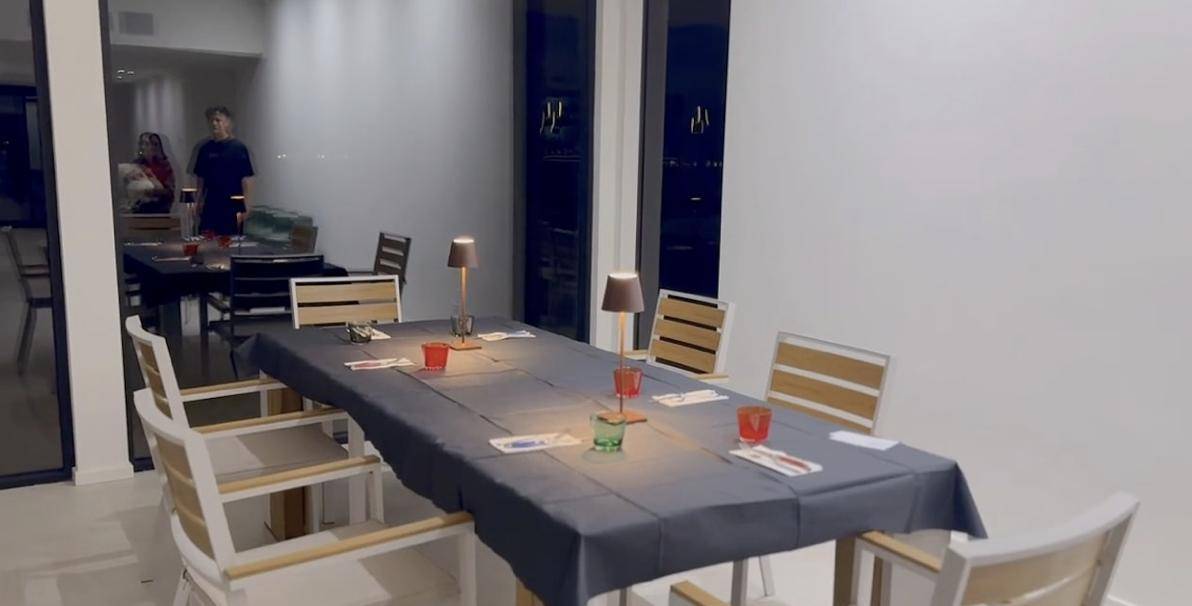 『胡燕妮』在美国住的是独栋大房子,房间很宽敞,餐桌对着的就是户外的草地庭院,而且大厅很大,还打造了一个酒柜与吧台,能够同时坐下四人。而一家人的感情还是相当融洽,在现场又唱又跳,特别是『胡燕妮』,别看她已经80岁了,身姿仍矫健,跳起舞来依然风情十足,丝毫不比其他人差。