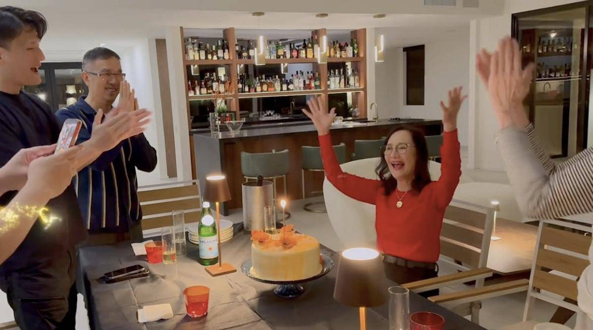 『胡燕妮』在美国庆祝80大寿,并没有大摆筵席,就是很寻常地家庭式庆祝。 虽然小儿子带了未婚妻回来,但是也没有特别安排。