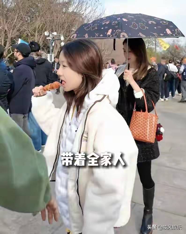 由于当天还是有些太阳的,所以洪欣还特意打了一把遮阳伞,想要保护好自己的状态。