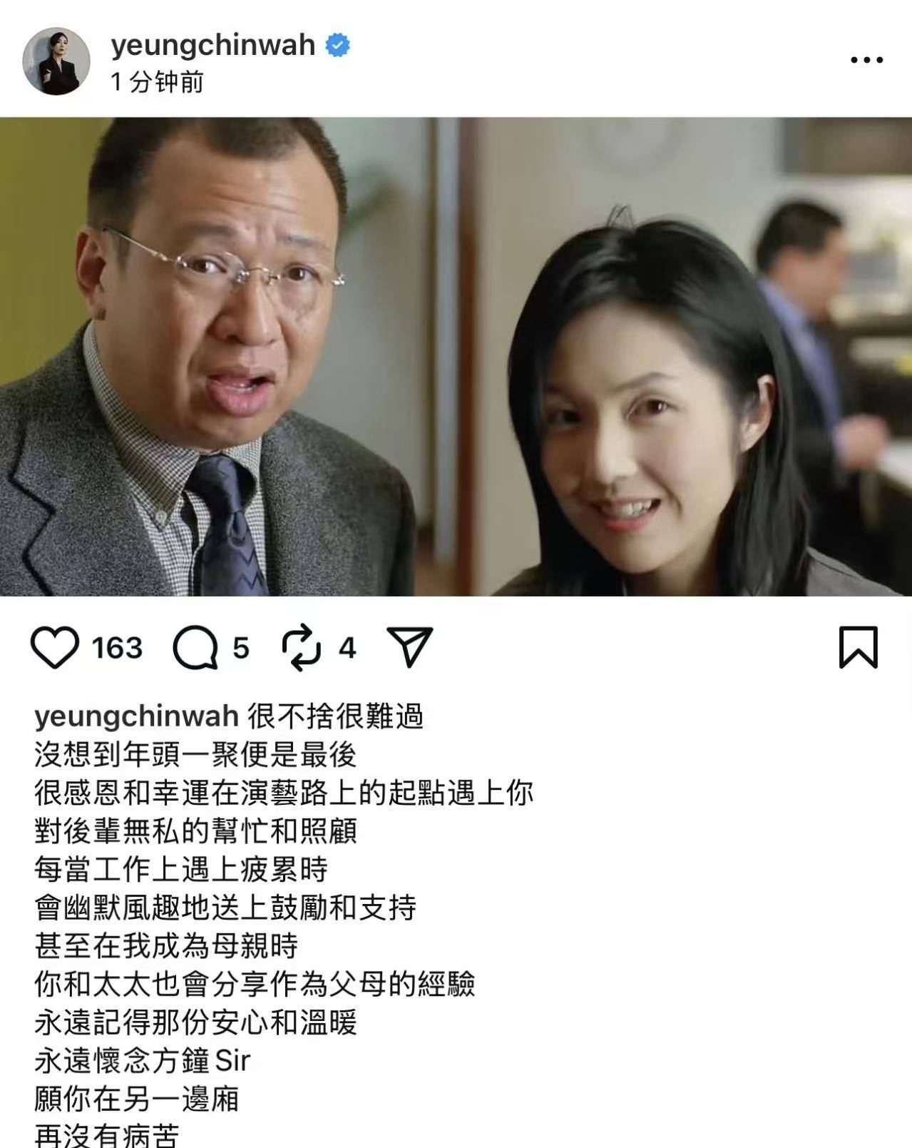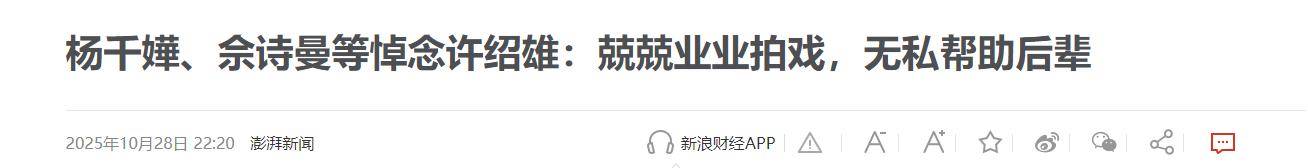 佘诗曼曾在采访中哽咽道:"许老师就像我的亲爸爸,他教会我的不仅是演技,还有做人的通透。"得知许绍雄离世,她眼眶通红,满是不舍。