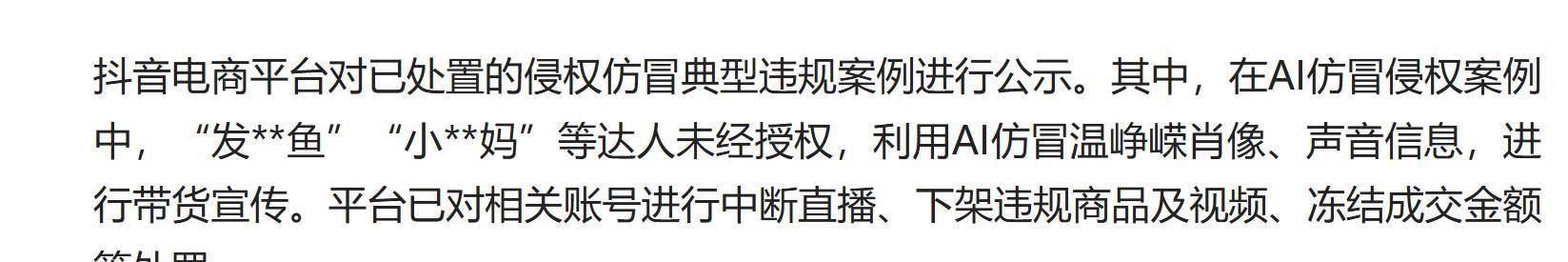 连环事件引发全网震动,平台终于重拳出击!专项治理行动随即展开,仅温峥嵘相关的仿冒视频就下架过万条,永久封禁数十个违规账号,清理数千条带货视频。同时,平台强制主播实名认证,加强技术审核,全力围堵"数字假人"。