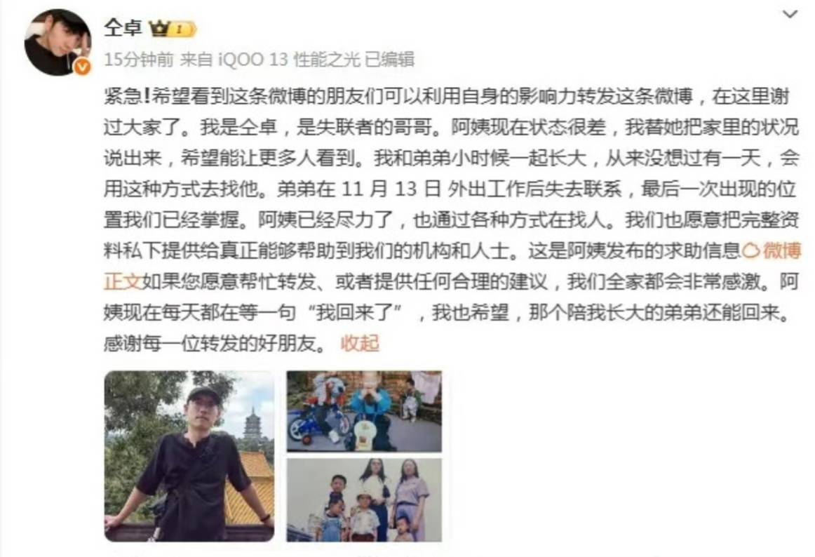 11月25日晚8点,演员仝卓突然在微博上演"紧急呼叫"大戏——他表弟李怡亨在柬埔寨失联13天,手机最后信号卡在班迭棉吉省,家属收到的语音虚弱得像"电量只剩1%的充电宝"!这剧情比《孤注一掷》还让人揪心,网友集体开启"全网寻人"模式,连吃瓜群众都跟着捏了把汗!