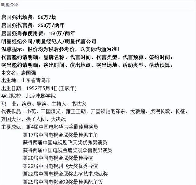 而更让观众不满的是酬劳传闻,有业内人士透露,唐国强作为国民老戏骨,单集综艺酬劳高达60万-80万,大制作节目更是突破百万,光去年一年综艺收入就超800万。