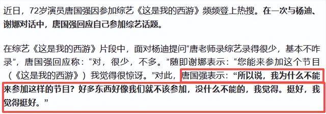 打开唐国强近年的行程表,综艺邀约多到让人咋舌。