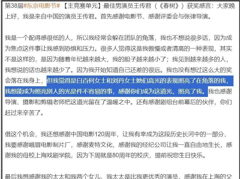 最引人瞩目的当属『王传君』的获奖感言!为避免误解,特此呈现完整内容: