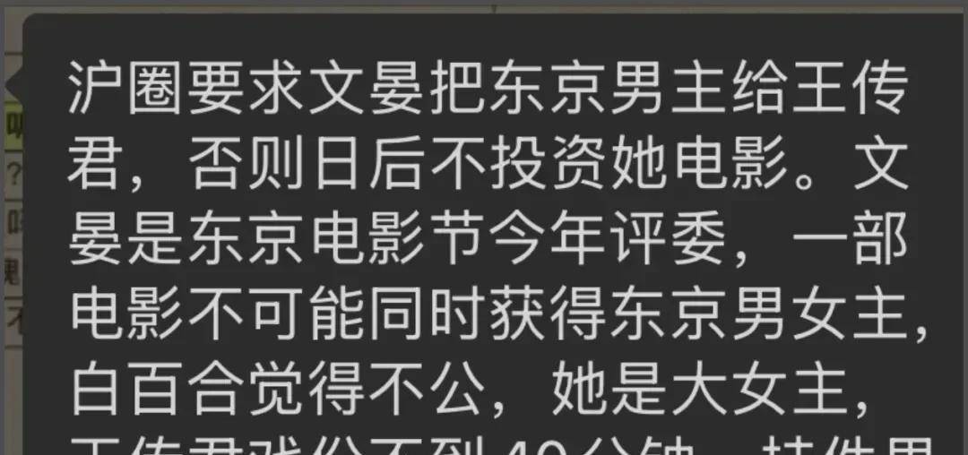 这条动态立即引发连锁反应!各种猜测指向评委文晏,传闻她为了力挺同圈层的『王传君』,早早就将『白百何』排除在获奖名单之外。