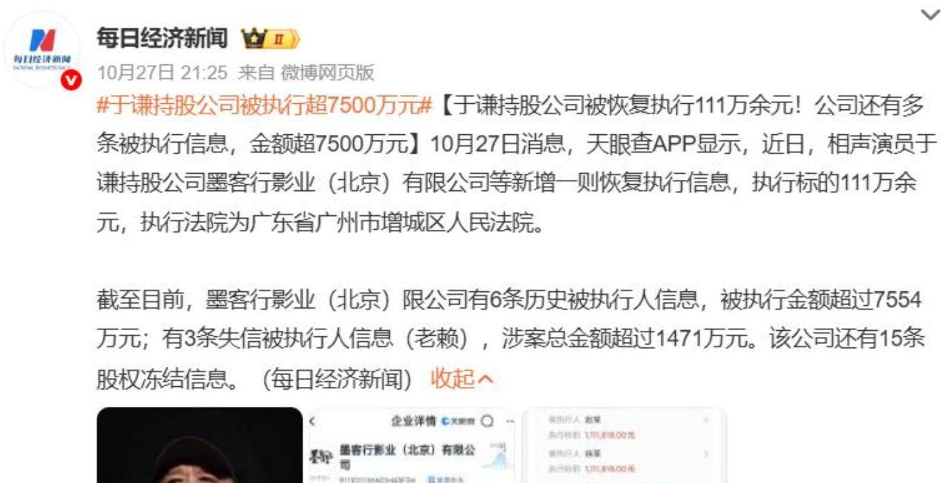 法院追债无门,只能请股东“兜底”。于谦,就这么被推到了风口浪尖。