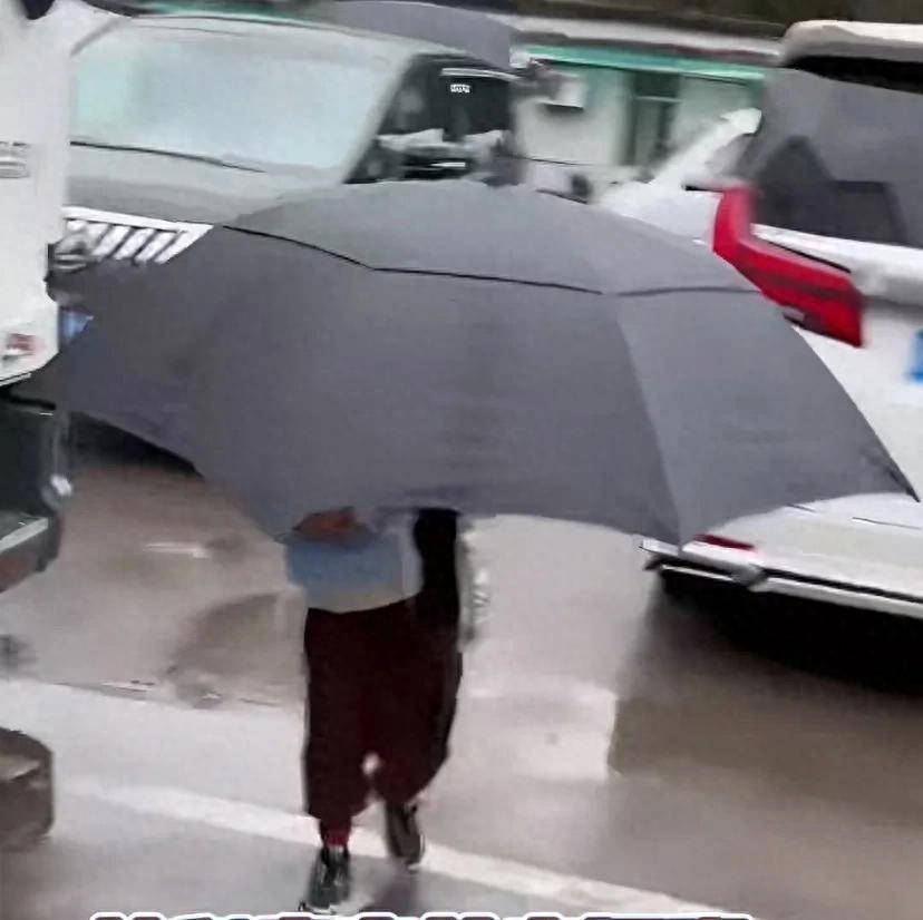 当天天空突然飘起细雨,只见咱们的小海绵🧽举着比自己还大的雨伞,怀里还抱着一大束灿烂的向日葵,“全副武装”跑来给老爸探班。这画面简直像偶像剧现场直播!