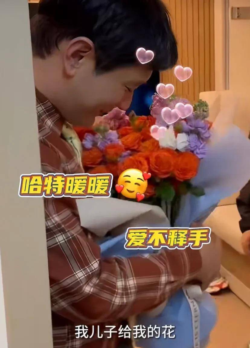 刚钻进房车,小家伙就迫不及待把花塞到爸爸手里。『黄晓明』瞬间眼睛亮成星星灯,一边疯狂亲亲儿子肉嘟嘟的脸蛋,一边举着花束到处炫耀:“看我宝贝送的花!全世界最靓!” 那嘚瑟劲儿简直要冲破屏幕!