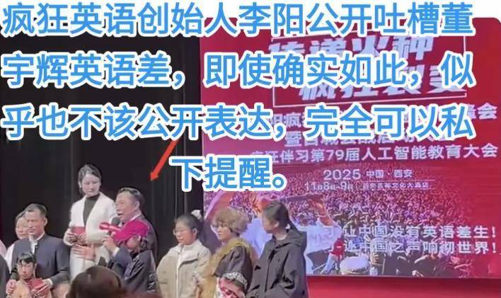 就在众人为他的才华点赞时,戏剧性的一幕发生了。“疯狂英语”创始人李阳突然开炮,在西安某活动现场公开质疑董宇辉的英语水平。
