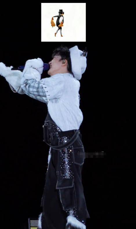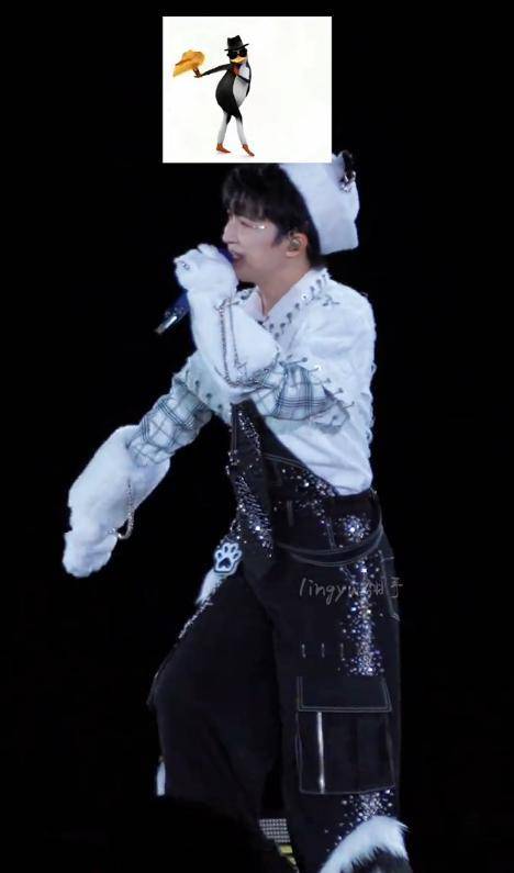 毛绒绒的白色外套🧥搭配闪钻背带裤,这身萌系装扮已经足够抢眼。更让人捧腹的是,他一边演绎着深情款款的旋律,一边跳着俏皮的企鹅舞步,现场观众先是一怔,随即爆发出阵阵欢笑!