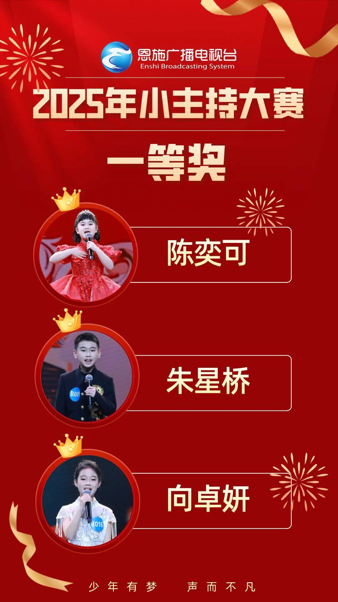 少年意气,未来可期!愿这些怀揣主持梦的小小少年,永远保持对语言的热爱,在更广阔的舞台上绽放光芒。