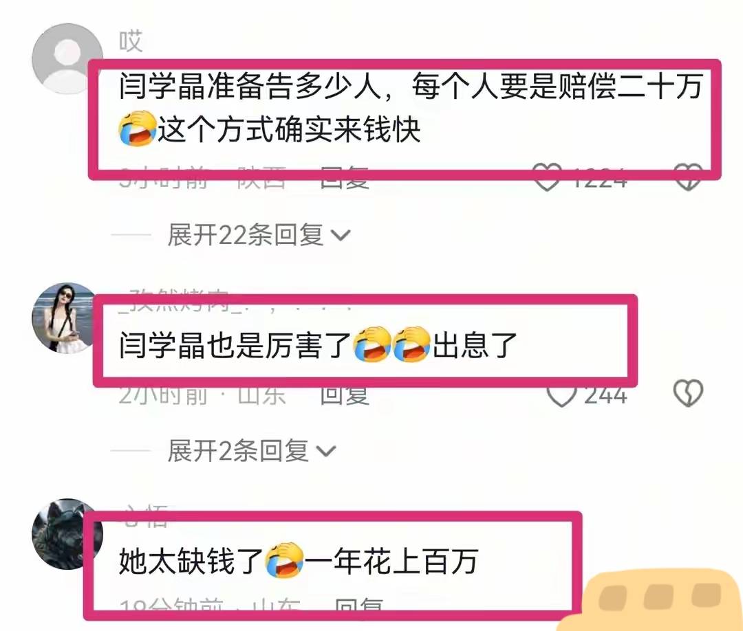 “我真是闫学晶老师的忠实粉丝,就是在账号上发了她的视频,没赚过一分钱,怎么就被起诉要赔20万呢?”