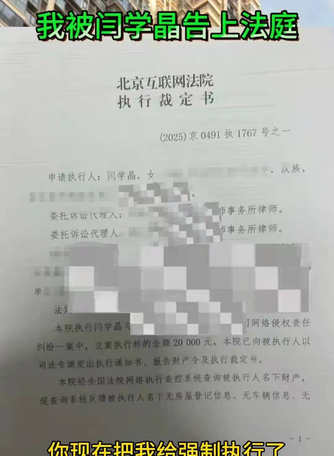 他曾多次联系闫学晶的律师,希望对方能撤掉执行,但未能得到同意,无奈之下才选择通过网上喊话的方式寻求解决。