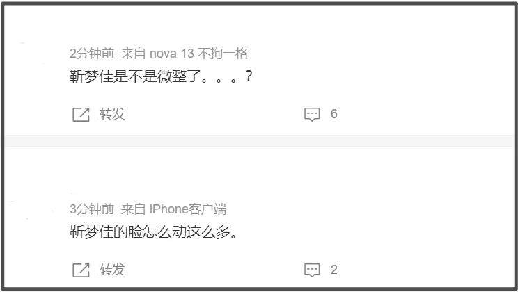 倒是靳梦佳的状态让人意想不到,不止一位网友质疑她整容了。